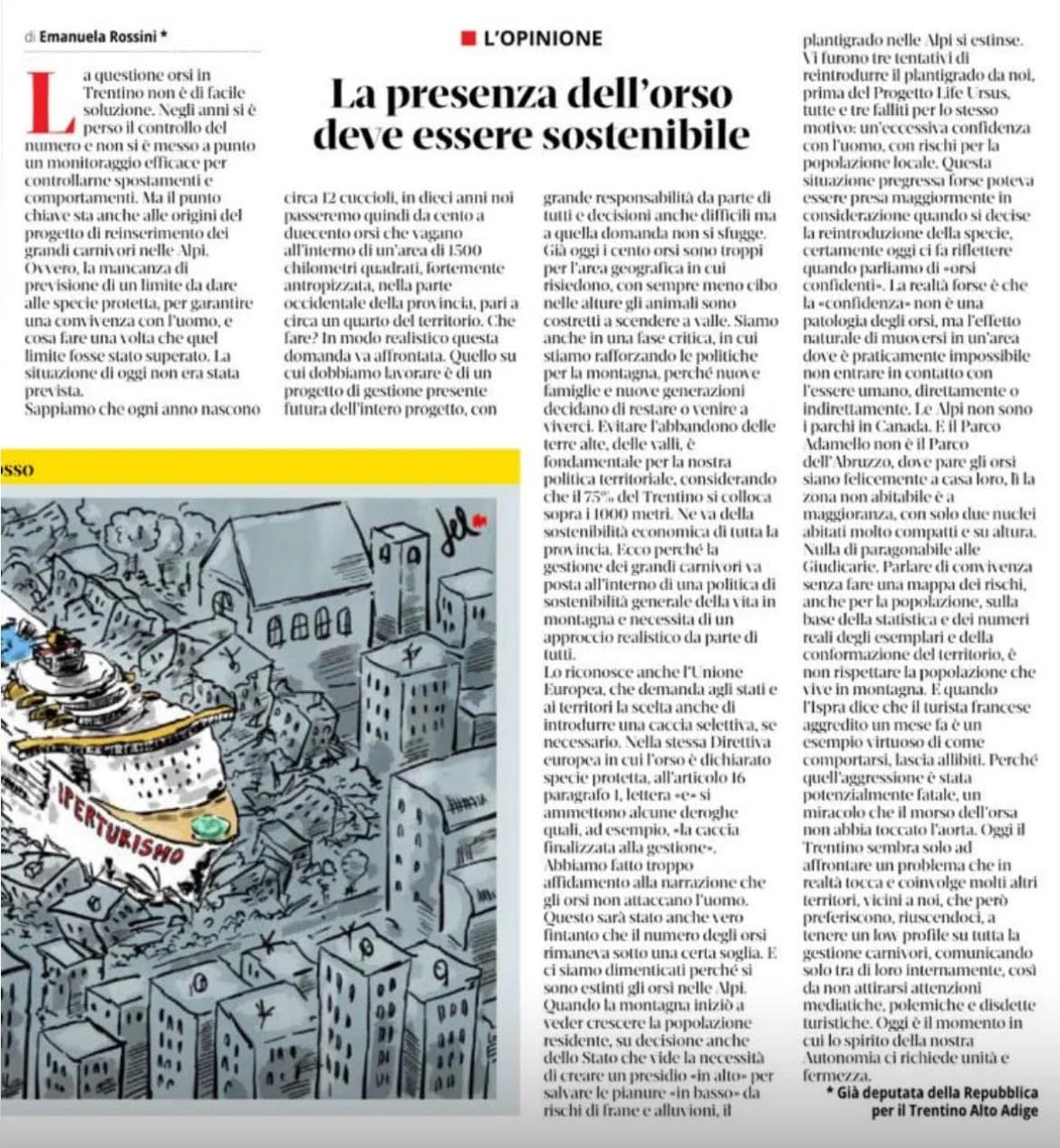 sul quotidiano il T Quotidiano. Una posizione non di ‘pancia, nè solo su basi scientifiche (doverose) , quanto piuttosto politica, di responsabilità, nel solco di una conoscenza profonda della vita in montagna.